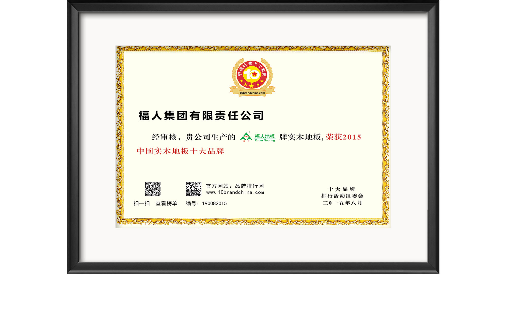 2015年獲品牌排行網(wǎng)實木類十大品牌